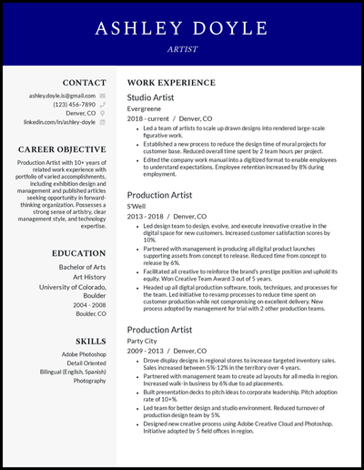 Experience for a Freelance Artist. Research the standard for resumes in your industry for any sector-specific advice. Get Instant Results Here.